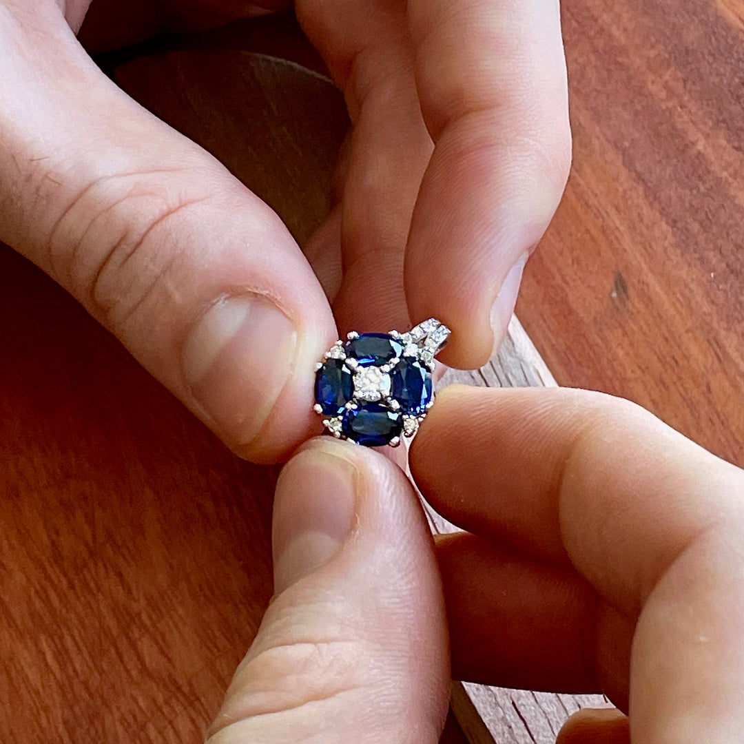 Our gemstones are hand-set by master artisans using traditional tools and techniques. This ensures each stone is perfectly placed, securely held, and beautifully aligned.