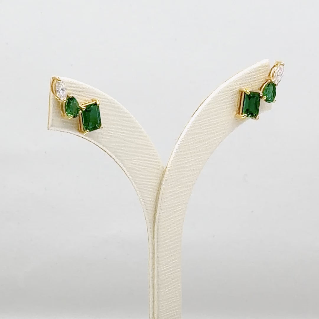 Kriva Emerald & Diamond 3-Gemstones Stud Earrings in Gold
