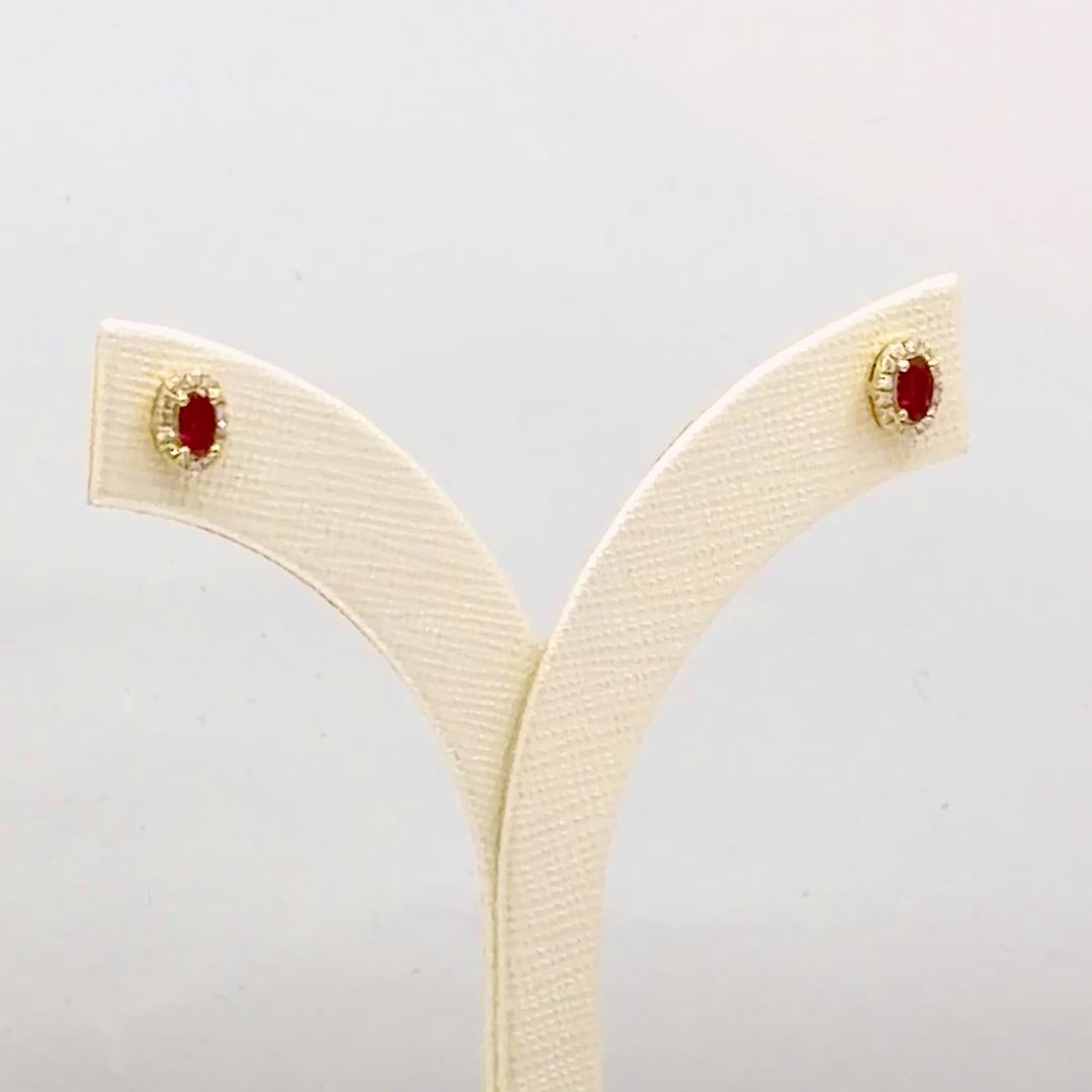 Mina Oval Ruby & Diamond Halo Earrings In White Gold - Mini