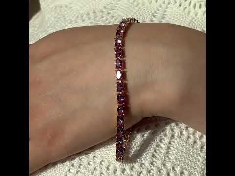 Salto tennis bracelet in gold set with ~18 carats 6mm x 4mm oval cut Purple sapphire gemstones.