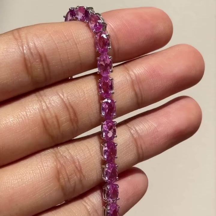 Salto Vivid Pink Sapphire Oval Tennis Necklace in Gold