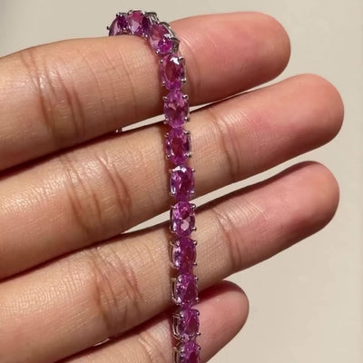 Salto Vivid Pink Sapphire Oval Tennis Necklace in Gold Sale priceDhs. 6,539.00