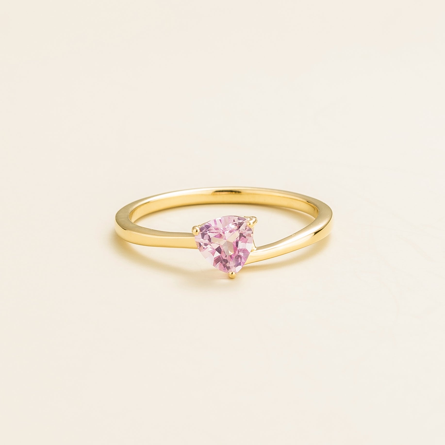Trillion stud earrings in gold set with ~1 carat (2 x 5mm) pastel Pink sapphires.