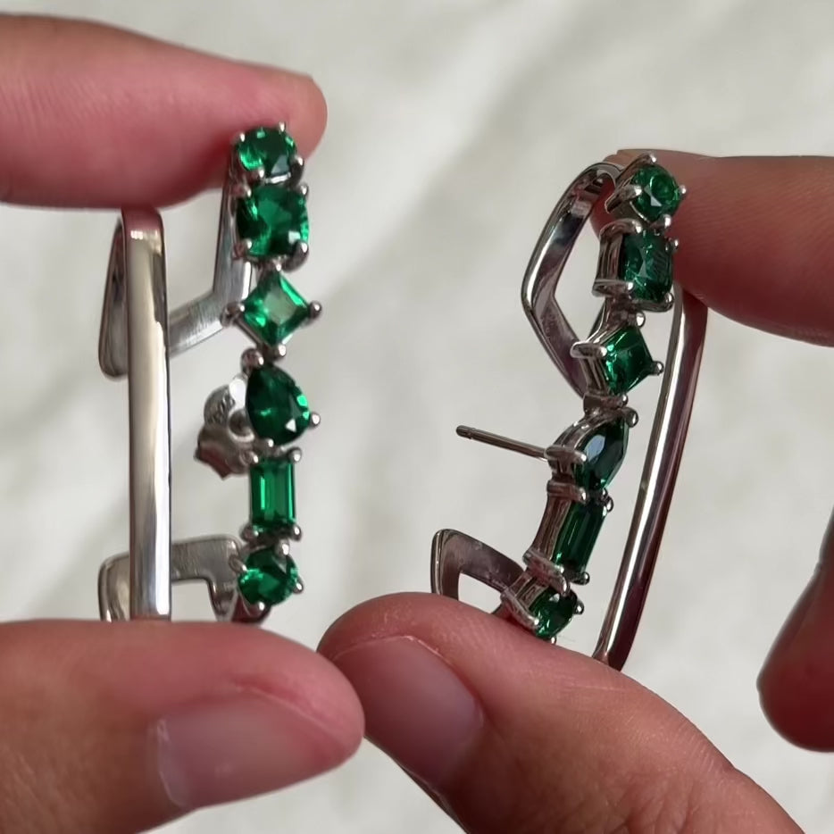 Serene earrings in 18K white gold vermeil set with ~3.60 carats Emerald.