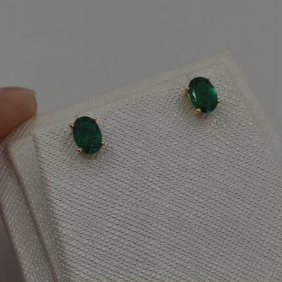 Ovo earrings in gold set with ~1.65 carats (7x5mm) oval Emerald gemstones.