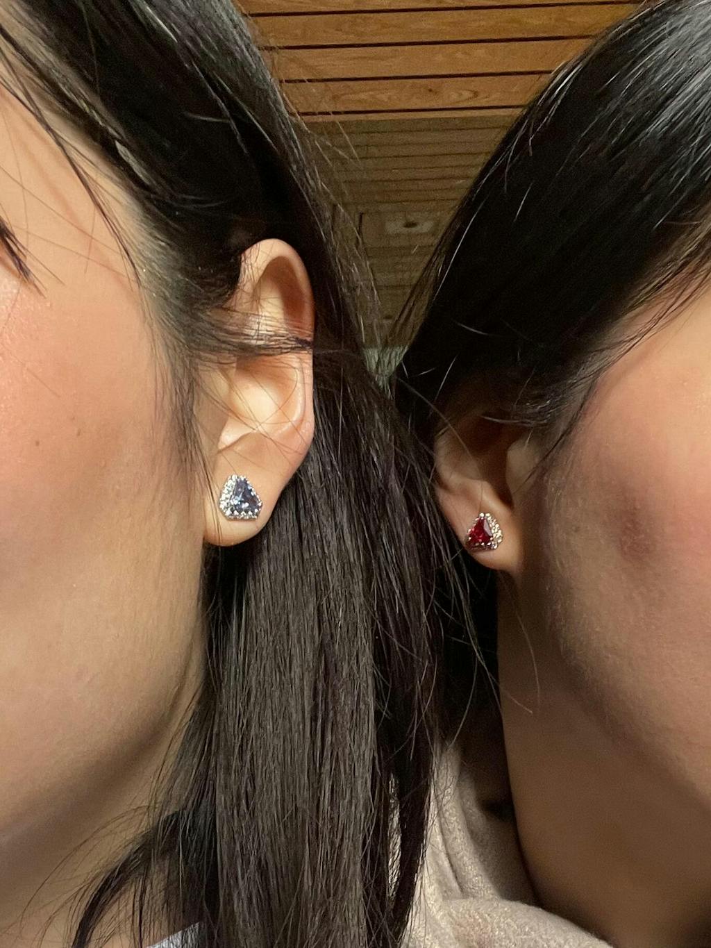 Ruby: ~2.28 carats (2 of 6mm x 7mm triangle)