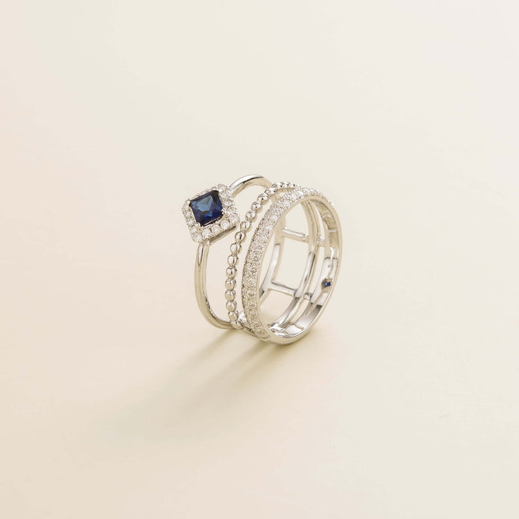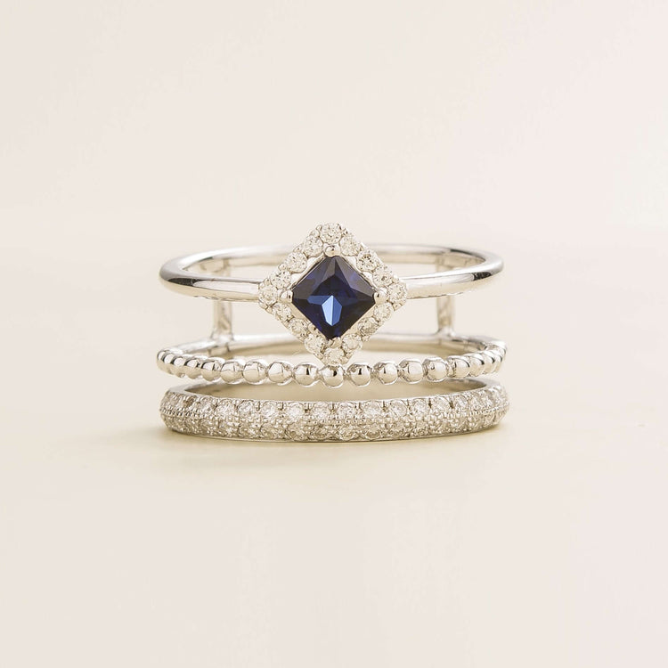 Amici white old triple layer stacking ring in princess cut Blue Sapphire & round pavé Diamonds