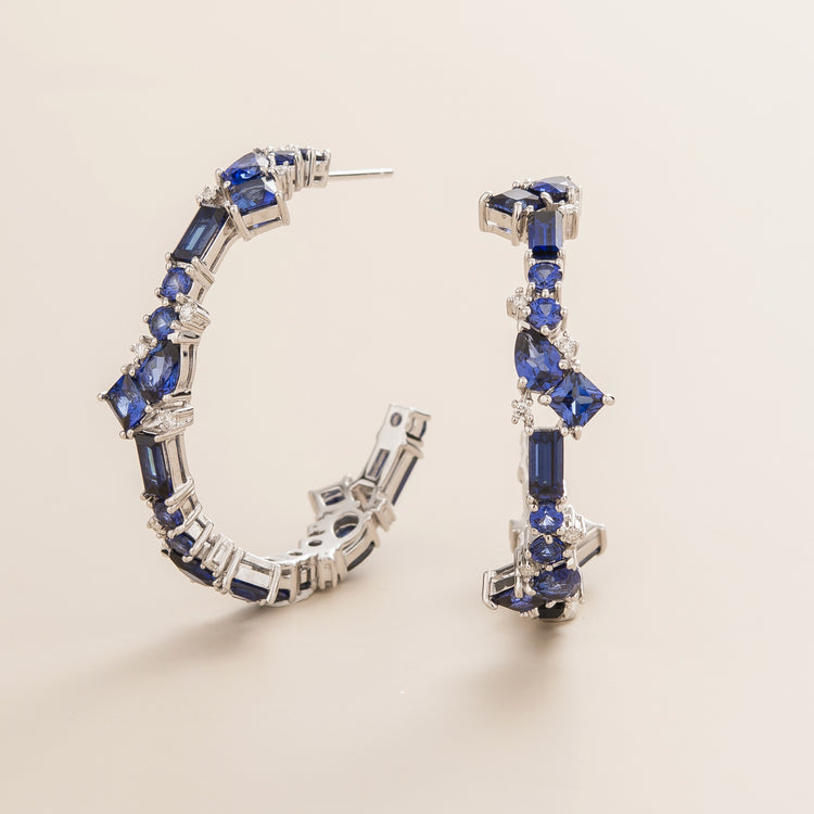 Lanna Large Hoop Earrings Set With Blue Sapphire earrings with Diamond By Juvetti London UK