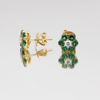 The Cinq motif stud earrings feature a central ~0.2 carat diamond, surrounded by bright yellow sapphires totalling ~1.7 carats across the pair. Crafted in gold, this floral-inspired design balances the brilliance of fine diamonds with the radiant glow of golden sapphires.