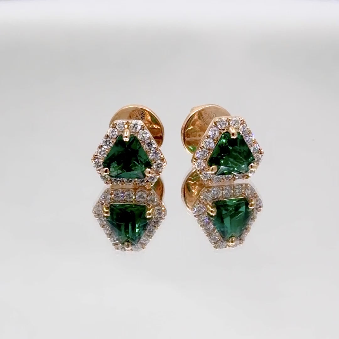 Diana Yellow Sapphire Triangle Cut & Diamond Halo Stud Earrings in Gold