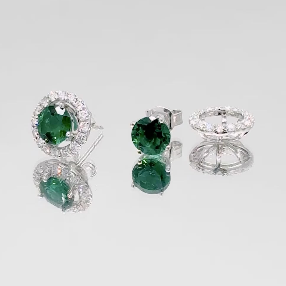 A pair of white gold floret earrings set with round yellow sapphire centerpiece and surrounding round diamonds halo. Removable halo piece. – Juvetti London
