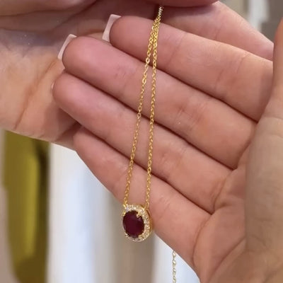 Mina Oval Yellow Sapphire & Diamond Halo Necklace In White Gold Sale price£370.00