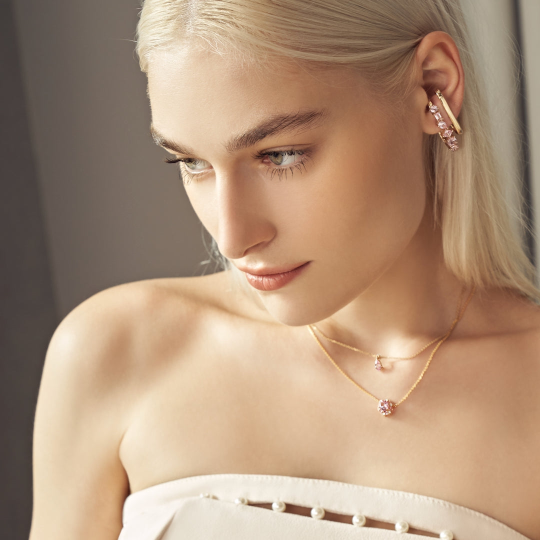 Ori necklace in gold set with Pink sapphire and Diamond.