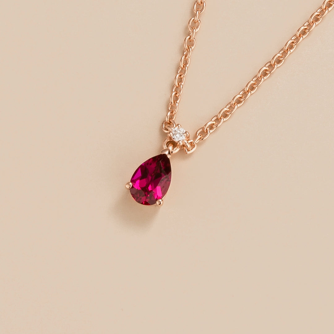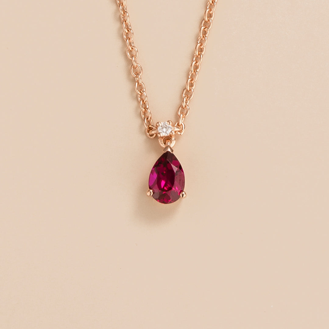 Ori necklace in rose gold set with Ruby and Diamond.