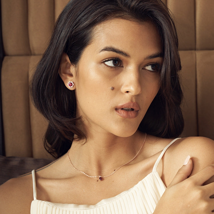 Ruby Necklace Juvetti Jewellery London Ori Small Pendant Necklace In Ruby and Diamond Set In Rose Gold