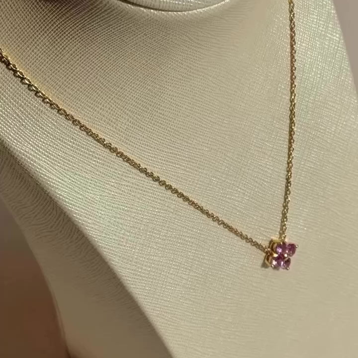Petale 4-gemstones pendant necklace in gold set with ~1.4 carats Yellow sapphire gemstones. (4 of 4mm round)