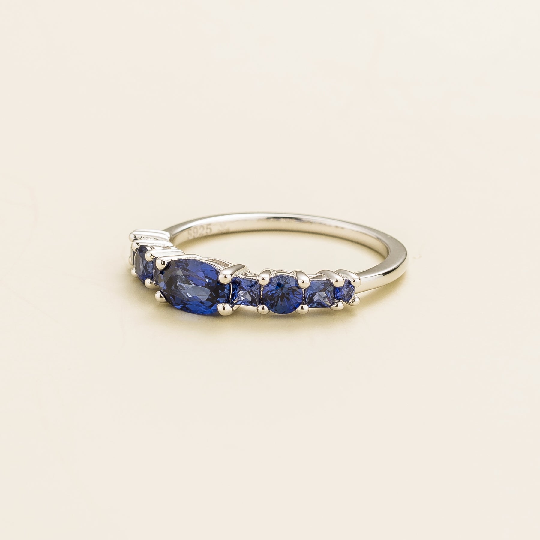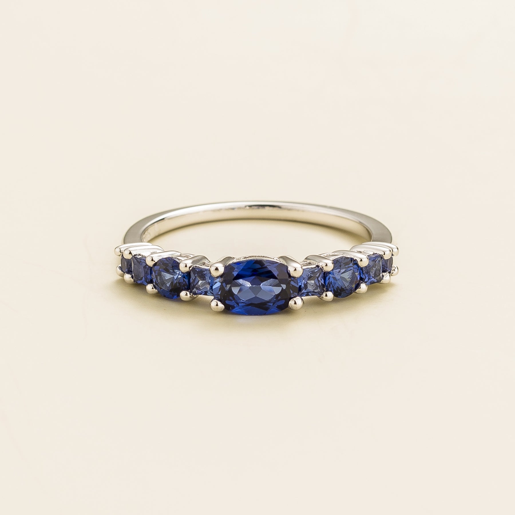 Petra Blue Sapphire Graduated Band Ring in White Gold