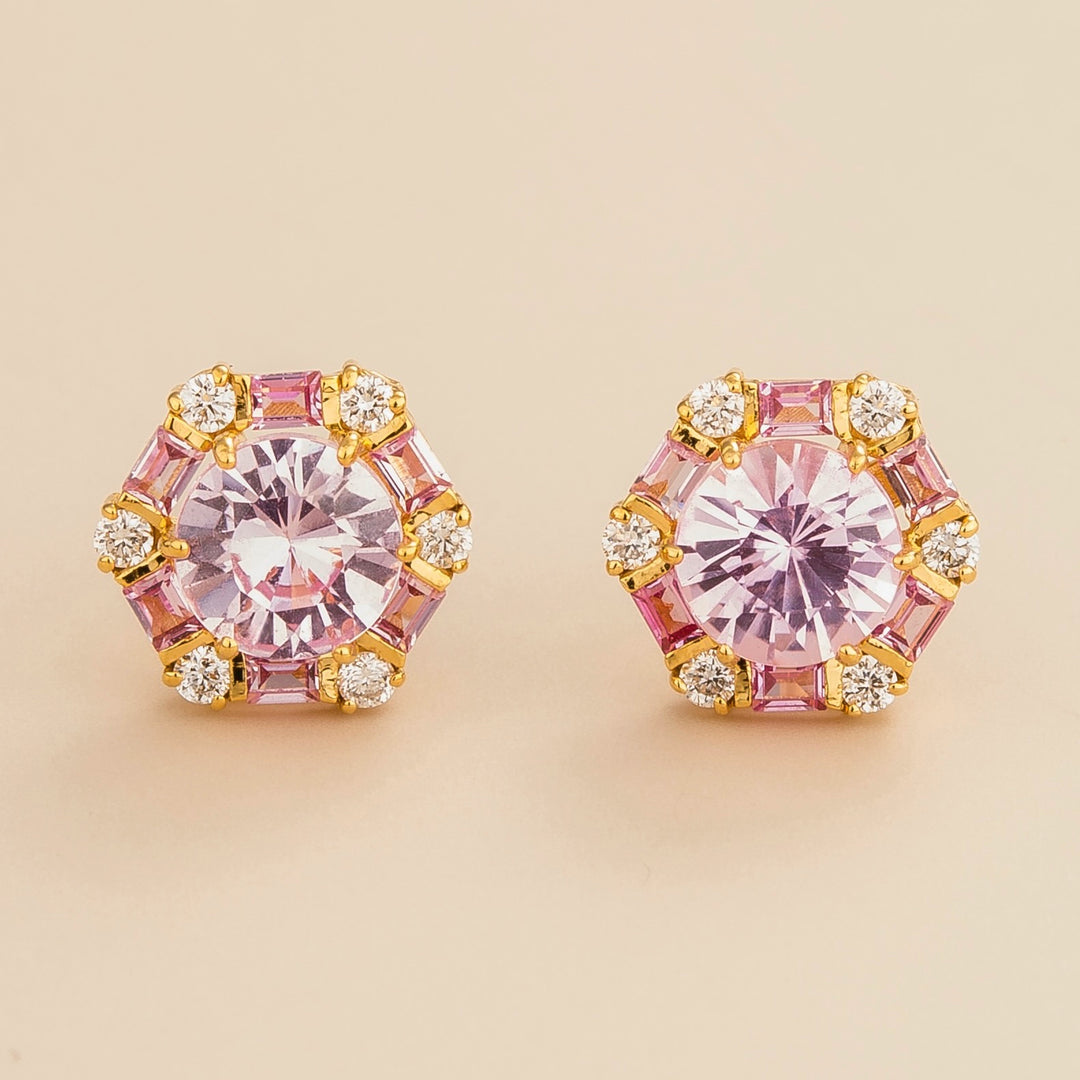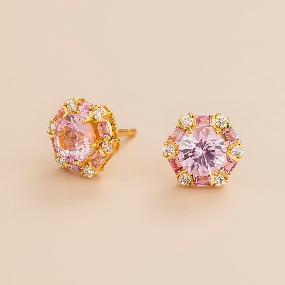 Melba earrings in gold set with Pink sapphire and Diamond.