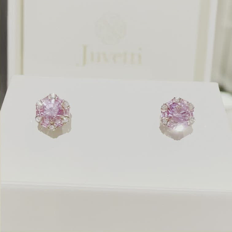 Pink sapphire stud earrings: ~2.4 carats (6mm round center stones)