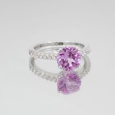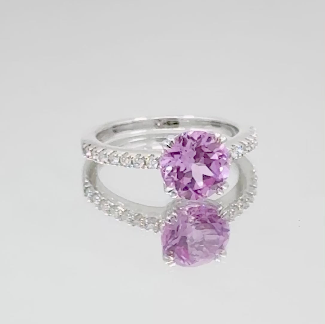 Solen Pink Sapphire Round & Diamond Pavé Ring in White Gold