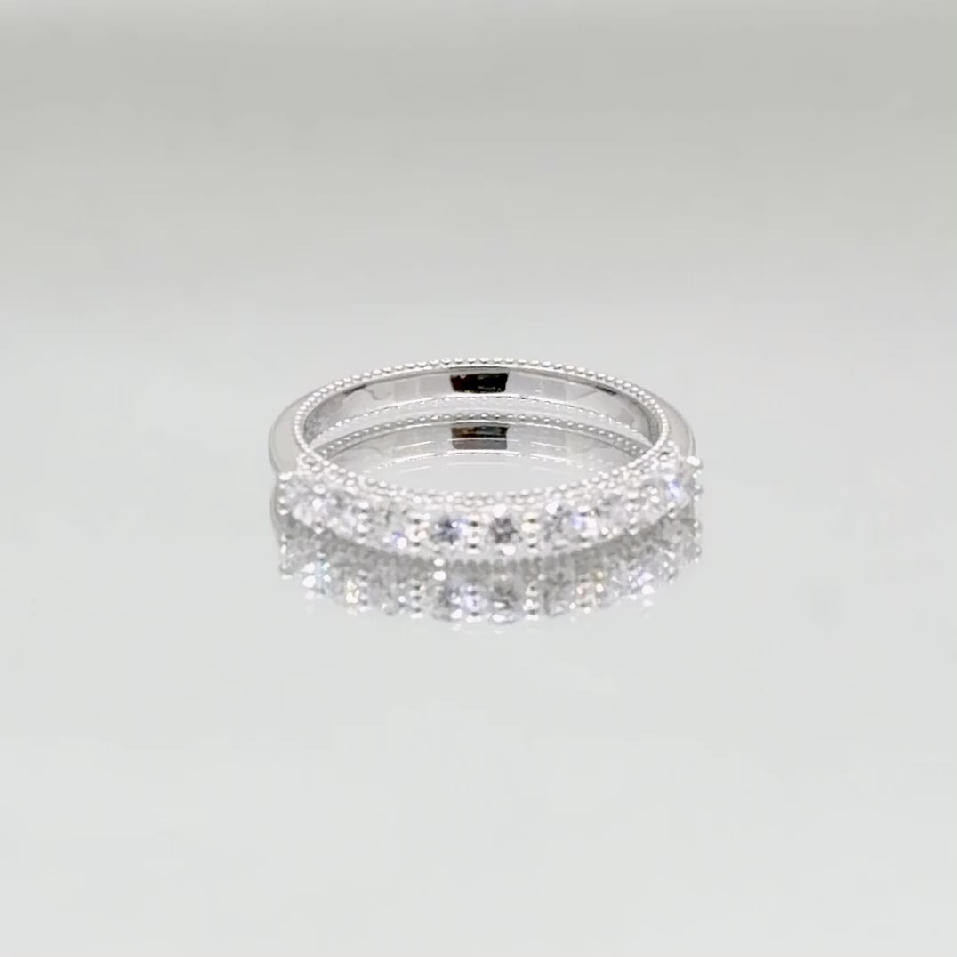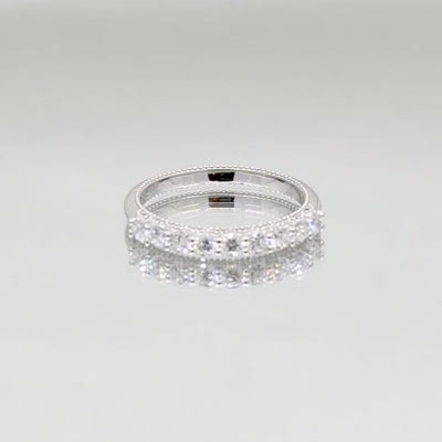 Tempo half eternity band ring in white gold set with ~0.5 carat round cut Diamonds in D-F VS grade.