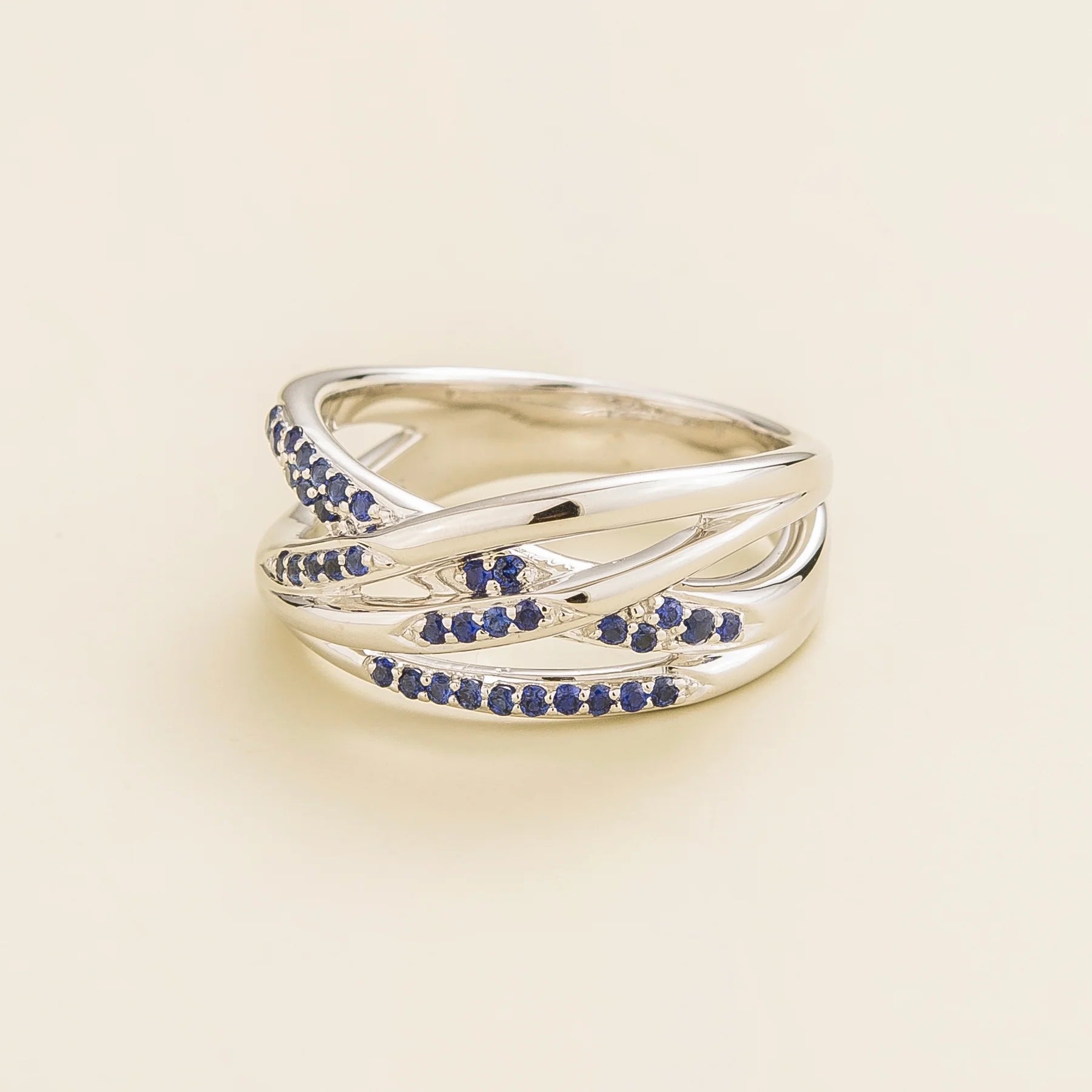 Val Blue Sapphire Multi Row Crossover Ring in White Gold Sale price£370.00